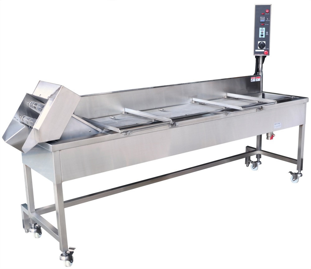 It can connect with conveyor to auto infeed product into continuous conveyor, suitable for large sum of food disposal.